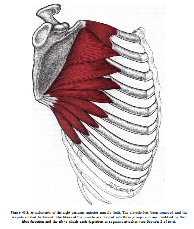The serratus anterior is occasionally called the "big swing muscle" or "boxer's muscle" because it is largely responsible for the protraction of the scapula — that is, the pulling of the scapula forward and around the rib cage that occurs when someone throws a punch.