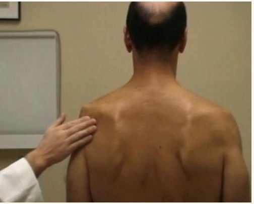 대개는 환자분들 옷을 입고 이학적 검사를 하기 때문에 위축이 된 여부를 알지 못하고 지나가는 경우가 많습니다. 이미 힘이 없다고 한 경우는 매우 심하거나, 거의 다 말랐겠지요! 해당 근육들이...