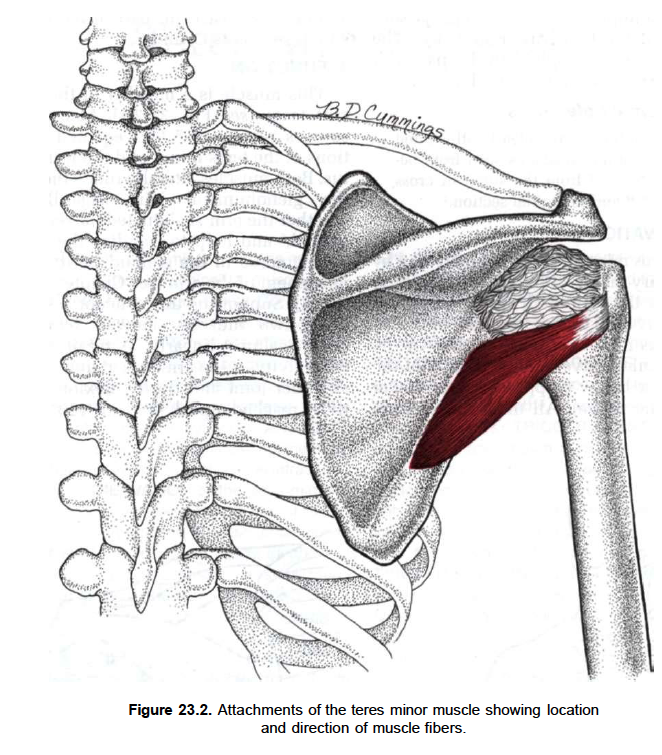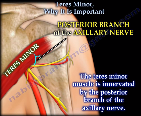 The muscle is innervated by the posterior branch of axillary nerve where it forms pseudoganglion. Pseudoganglion has no nerve cells but only nerve fibres are present. Damage to the fibers innervating the teres minor is clinically significant.