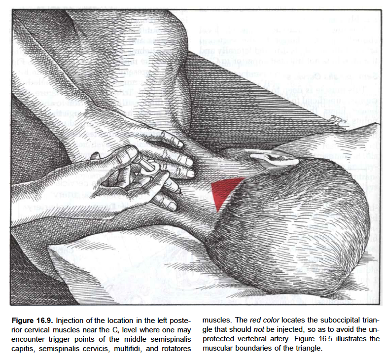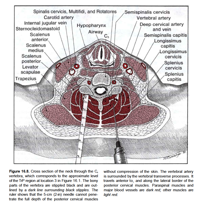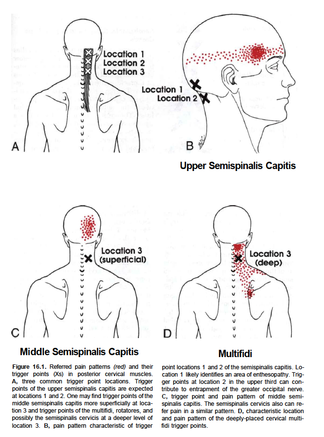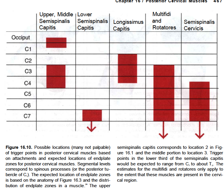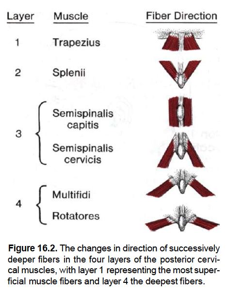 It lies deep to the trapezius muscle and can be palpated as firm round muscle mass just lateral to the cervical spinous processes. The semispinalis muscles are innervated by the dorsal rami of the cervical spinal nerves.