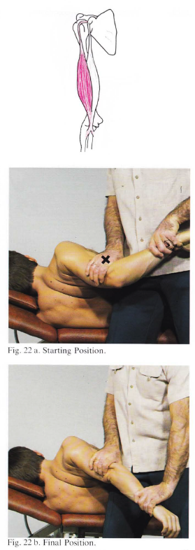 To isolate the biceps brachii in elbow flexion, place the shoulder in hyperextension. In training the biceps brachii, it is important to distinguish between the long head and the short head of the biceps. The long head is the outer portion of the muscle. The short head is the inner portion of the muscle. If you look at the additional images below, you will see a picture that highlights each of the bicep heads for you.