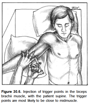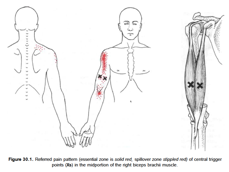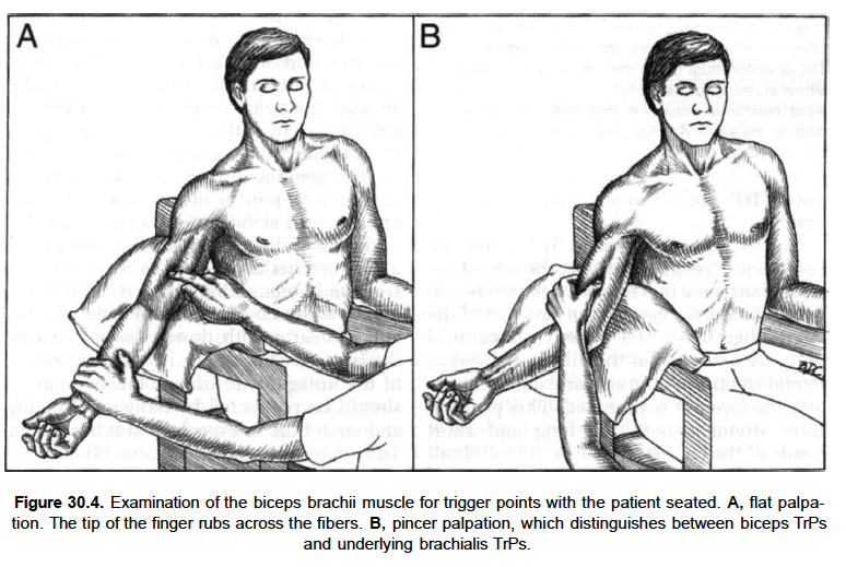 The proximal tendons of the biceps brachii are commonly involved in pathological processes and are a frequent cause of anterior shoulder pain.[11] Disorders of the distal biceps brachii tendon typically result from partial and complete tears of the muscle. Partial tears are usually characterized by enlargement and abnormal contour of the tendon.[12] Complete tears generate a soft-tissue mass in the anterior aspect of the arm, the so called Popeye sign, which paradoxically leads to a decreased strength during flexion and supination of the forearm.[13] Tears of the biceps brachii occur in athletic activities and corrective surgery repairs biceps brachii tendon tears. Proximal ruptures of the long head of the biceps tendon can be surgically repaired by two different techniques. Biceps tenodesis is resurfacing the tendon by screw fixation on the humerus and biceps tenotomy is trimming the long head of the biceps tendon promoting the muscle origination from the coracoid process.Preexisting degeneration in the tendon can cause partial tears called lesions and are rarely associated with a traumatic event. The most common symptom of a biceps tear is pain. It will be the most severe in the muscle, but may stretch to the shoulders and elbows as well. Treatment of a biceps tear depends on the severity of the injury. In most cases, the muscle will heal over time with no corrective surgery. Applying cold pressure and using anti-inflammatory medications will ease pain and reduce swelling. More severe injuries require surgery and post-op physical therapy to regain strength and functionality in the muscle. Corrective surgeries of this nature are typically reserved for elite athletes who rely on a complete recovery.[14]