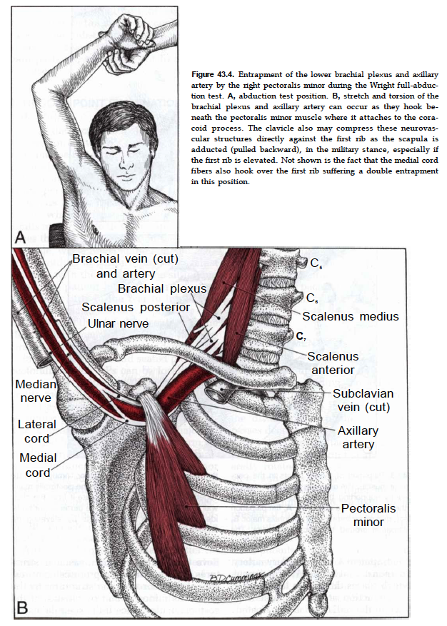 - 만일 견갑골이 지붕처럼 경사지게 위치해있다면 오훼돌기에서 소흉근의 단축이 아래로 당겨 견갑골을 기울였을 것임.