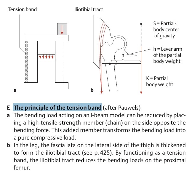 It stabilizes the knee both in extension and in partial flexion, and is therefore used constantly during walking and running. In leaning forwards with slightly flexed knee the tract is the main support of knee against gravity.