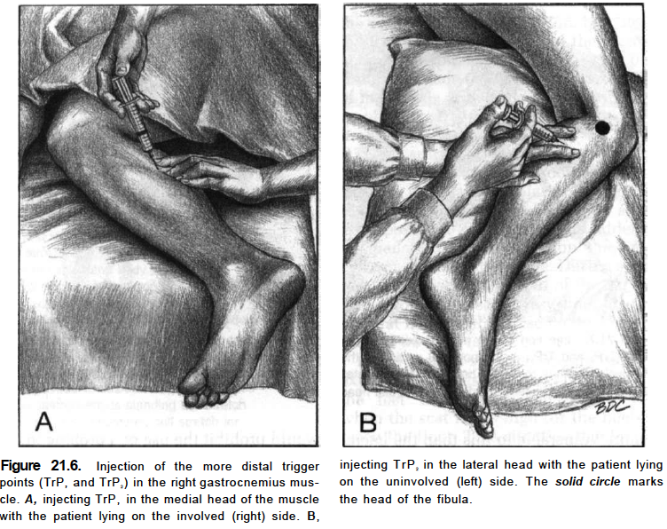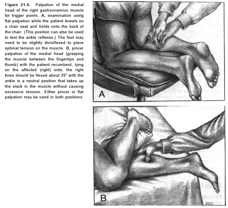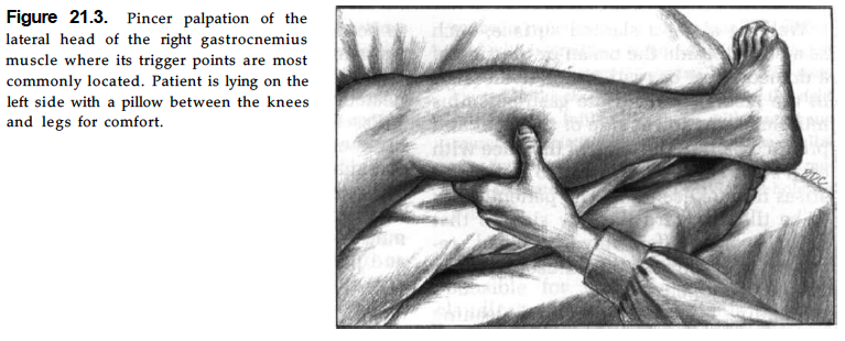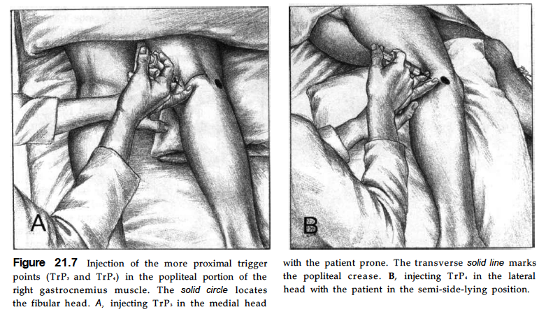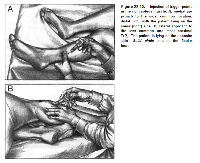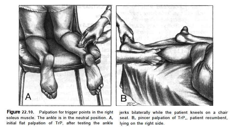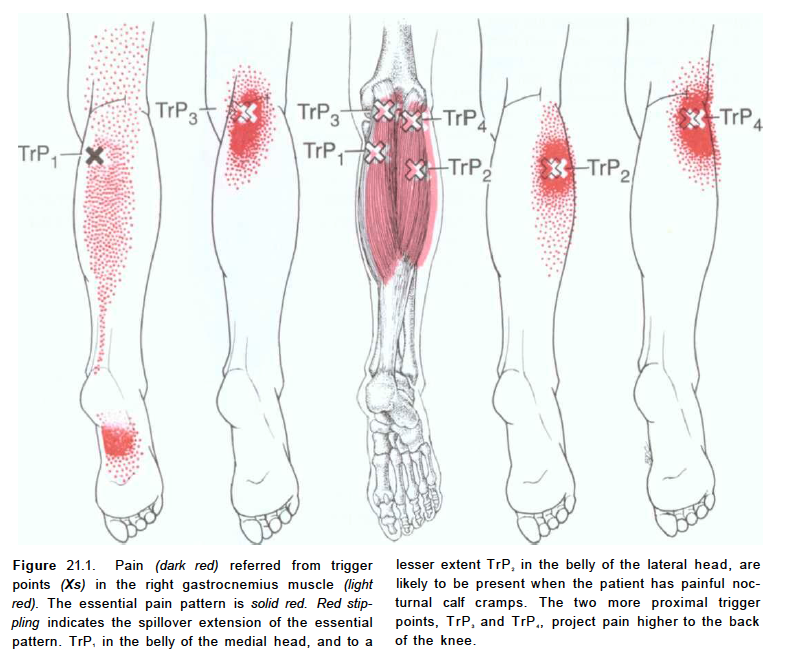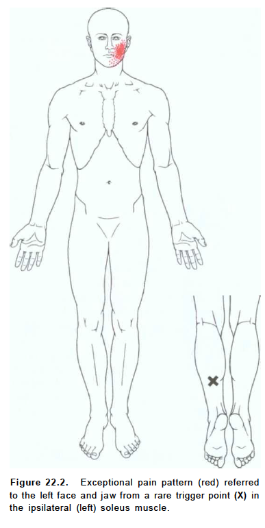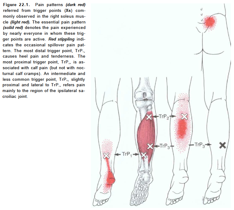 - 가자미근 TrP3는 동측의 SI joint, 심지어 동측 턱관절 부위로 연관통