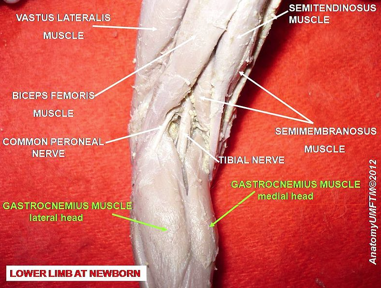 Frequently there is a sesamoid bone called the "fabella" in the lateral head of gastrocnemius muscle.