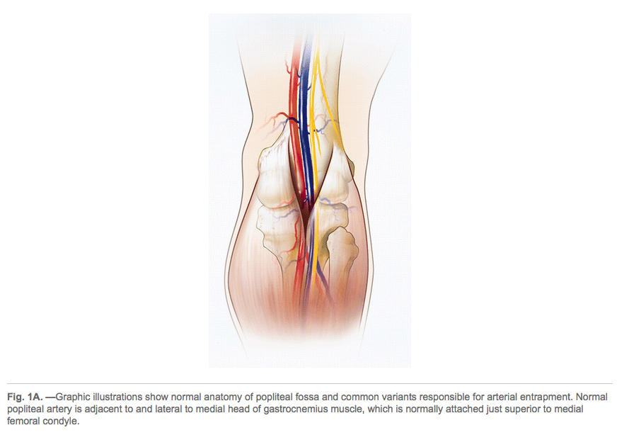 Anatomical abnormalities involving the medial head of gastrocnemius muscle result in popliteal artery entrapment syndrome.