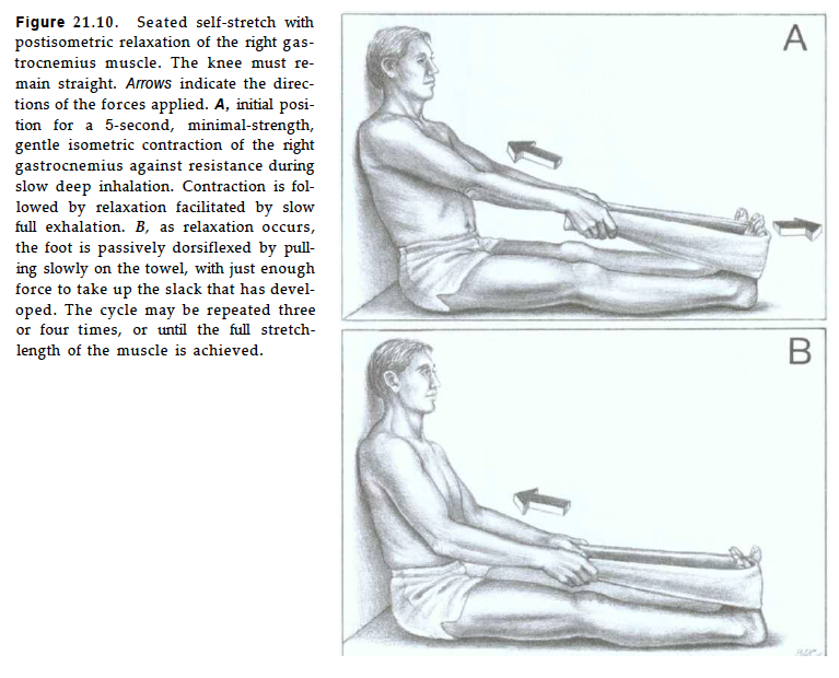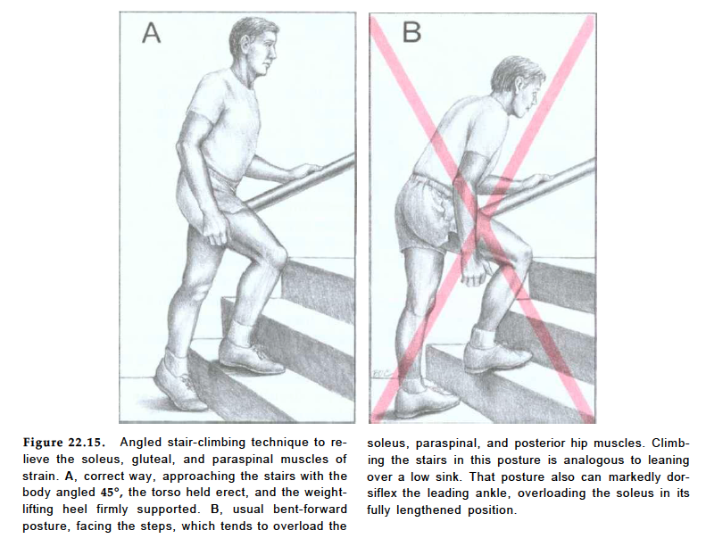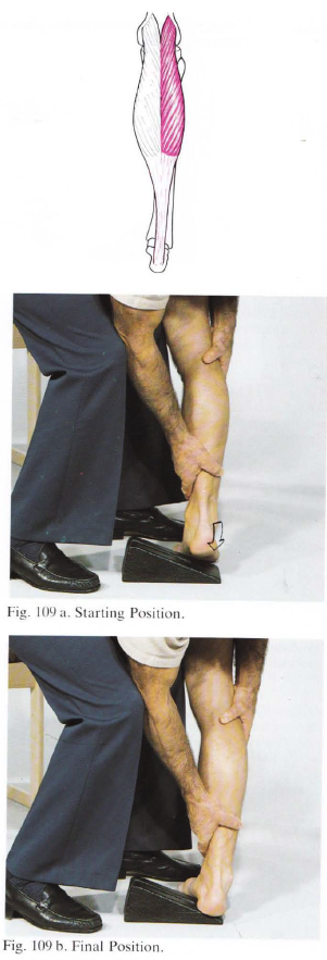 A severe ankle dorsiflexion force may result in an injury of the muscle, commonly referred to as a "torn" or "strained" calf muscle, which is acutely painful and disabling. The gastrocnemius muscle may also become inflamed due to overuse. Anti-inflammatory medications and physical therapy (heat, massage, and stretching) may be useful.