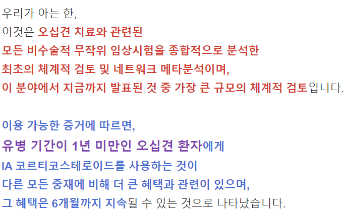 IA 코르티코스테로이드는 임상적으로 유의미한 차이를 보이며