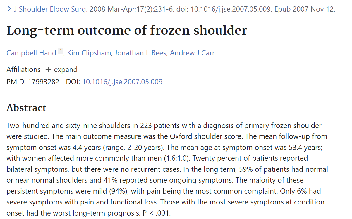 JAMA 오십견 자연경과(natural history)