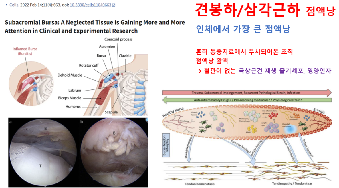 견봉하낭 조직이 인접한 회전근개 힘줄의 치유를 지원할 잠재력으로 인해 더욱 주목받게 한다.
