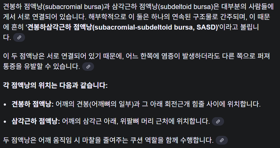 특히 견봉하 활액낭의 염증인 견봉하 활액낭염은