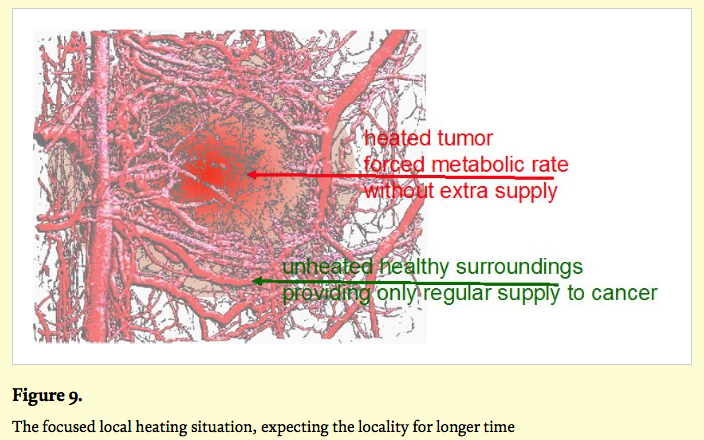 암세포는 41도 이상의 열을 가하면 암세포 증식을 멈추고 급속히 쇠약해짐. 정상세포의 혈관은 열이 가해지면 확장하여 혈류를 늘림으로써 열을 방출함. 하지만 암세포의 혈관은 쉽게 확장되지 못하기 때문에열을 방출하지 못함.