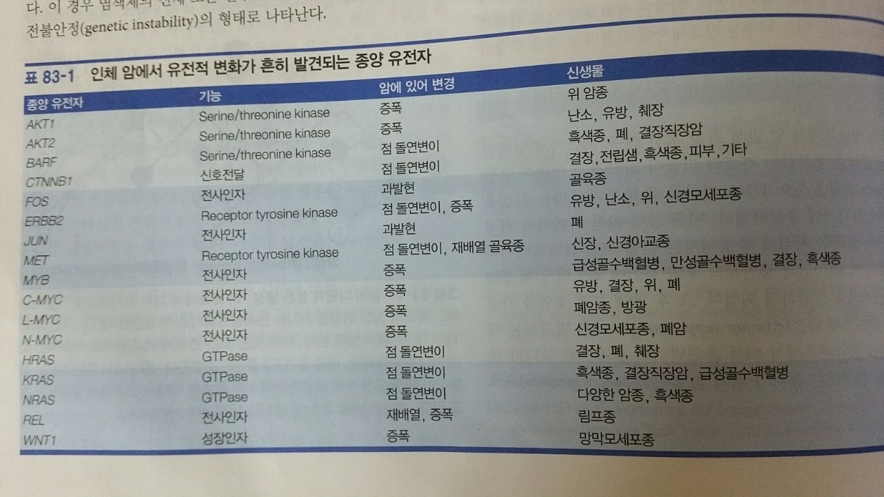 인체 암에서 유전적 변화가 흔히 발견되는 종양유전자