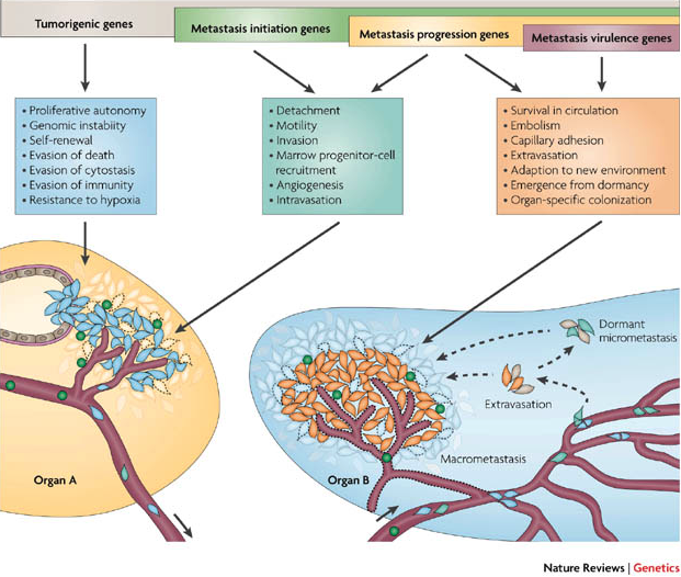 # 전이 : 암세포가 림프절 또는 먼 종양조직으로 확산되는 현상, 외부환경에서 종양세포가 생존할 수 있는 능력에 의해서 제한됨.