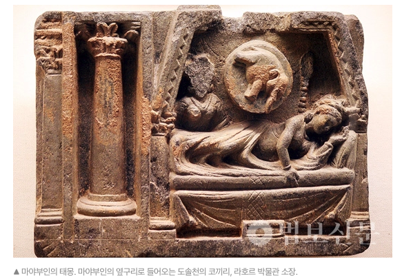 싯다르타는 생후 7일 만에 어머니 마야 부인을 여의고 이모인 마하파자파티(Mahapajapati)의 손에 자랐으며, 뛰어난 지혜로 사람들을 놀라게 하였다. 성장하면서 진리에 관해서도 명상했는데, 그때까지만 해도 궁전 안의 안락함이 모든 인간의 생활인 줄 알았다. 어느 날 궁 밖으로 나와 밭갈이하는 농부를 보고 인간들이 수고해야 삶을 영위할 수 있다는 인간 사회의 고통을 깨달았다. 그리고 새에게 잡아먹히는 벌레를 보고 큰 충격을 받았으며, 쇠약한 노인을 보고는 인생의 무상함을 느꼈다. 태어나서 병들어 신음하고 죽어야 하는 생로병사의 운명에 슬픔을 금치 못하였다.