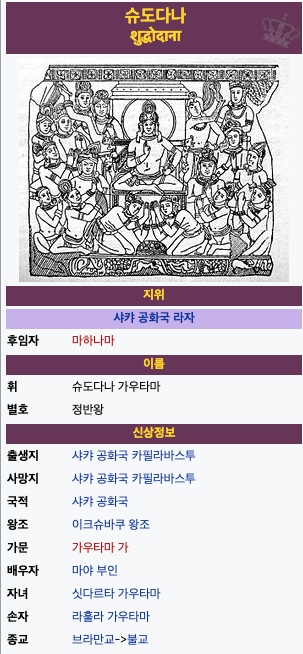 기원전 6세기경 현재의 네팔 남부와 인도의 국경 부근 히말라야 기슭에 카필라바스투(가비라성, 지금의 네팔 티라우라코트)을 중심으로 샤캬 공화국이 있었다. 싯다르타는 그 나라의 왕 슈도다나(Suddhodana, 정반왕)와 마야 부인(Mahamaya) 사이에서 태어났다. 샤캬 공화국은 일종의 혼합정체가 행해지고 있었다. 라자라는 수장을 교대로 선출하는 독립된 자치 공동체였지만, 정치적으로는 코살라 왕국에 예속되어 있었다.