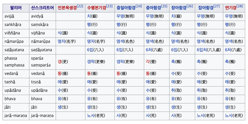 무명-행-식-명색-육입-촉 수 애 취 유 생-노사