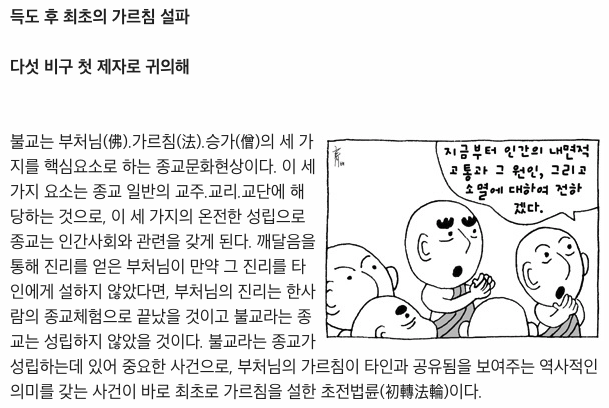 다섯 비구의 교화를 통해서 불교의 3보 중 마지막 승이 갖추어짐.
