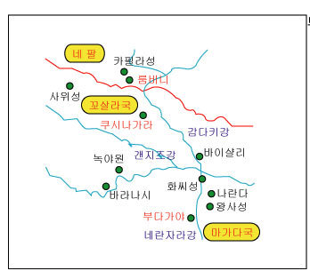 두번째로 강한 국가인 코살라 국의 수도 사위성에는 기타 태자와 당시 인도 최고자산가인 급고독장자가 연합해서 지은 7층 대가람 기원정사가 들어섬.