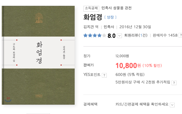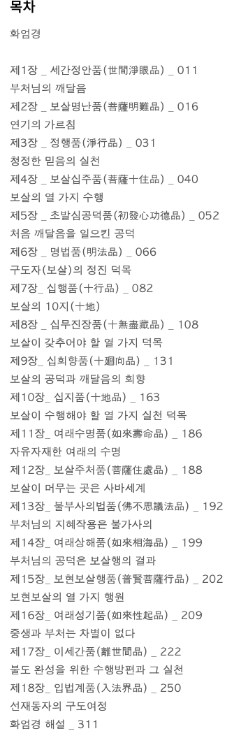 참고) 《대방광불화엄경(大方廣佛華嚴經)》(산스크리트어: महावैपुल्यबुद्धावतंसकसूत्र, 산스크리트어: Mahāvaipulya Buddhāvataṃsaka Sūtra[1]) 줄여서 《화엄경(華嚴經)》(산스크리트어: Avataṃsaka Sūtra) 또는 《잡화경(雜華經)》(산스크리트어: Gaṇḍavyūha Sūtra)은 초기 대승불교의 가장 중요한 경전 중 하나로,[2] 중국과 한국의 화엄종을 비롯한 많은 종파의 핵심 경전으로 사용된다. 29세에 출가한 고타마 붓다가 35세인 기원전 589년 음력 12월 8일, 부다가야의 보리수 나무 아래에서 완전한 깨달음(아뇩다라삼먁삼보리)을 얻고서, 첫 제자들에게 최초에 설법한 것이 《화엄경》이라는 설이 있다. 그러나, 불교학자들은 《화엄경》은 대승불교의 경전이라서, 고타마 붓다가 최초에 설법한 것으로 볼 수는 없다고 한다.