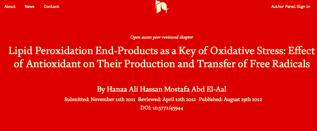 The lipid hydroperoxide (ROOH) is unstable in the presence of irron or other metal catalysts because ROOH will participate in a Fenton reaction leading to the formation of reactive alkoxy radicals. Therefore, in the presence of irron, the chain reactions are not only propagated but amplified. Among the degradation products of ROOH are aldehydes, such as malondialdehyde, and hydrocarbons, such as ethane and ethylene, which are commonly measured end products of lipid peroxidation (Sener et al., 2004). During peroxidation pathway via reactive intermediates, several end products are formed such as aldehyde [malondialdehyde + 4-hydroxynonenal], pentane and ethane, 2,3 transconjugated diens, isoprostains and chlesteroloxides. The biological activities of MDA and other aldehydes include cross-linking with DNA and proteins, which alters the function/activity of these molecules. MDA + 4HNE have shown tissue toxicity. MDA can react with amino and thiol groups, the aldehydes are more diffusible than free radicals, which means damage is exported to distance sites. Aldehydes are quickly removed from cells as several enzymes control their metabolism (Ustinova and Riabinin 2003).