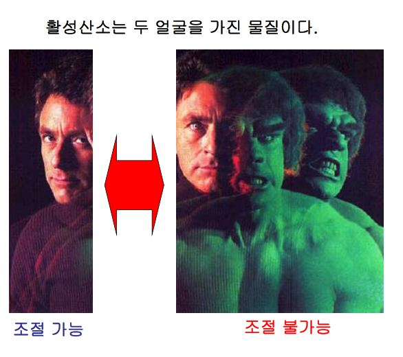 활성산소는 일종의 짝잃은 외기러기로 전자 하나가 부족해서 불안정함.