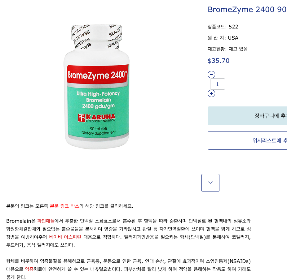 - 파인애플에서 추출한 효소로 항염증작용이 뛰어나 통풍관절염 약으로 훌륭함