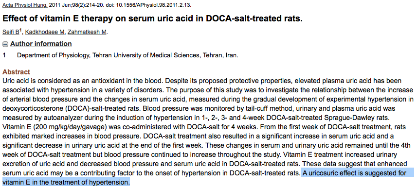 - 통풍으로 인한 동맥경화, 고혈압 예방에 비타민 E가 효과적이라는 논문