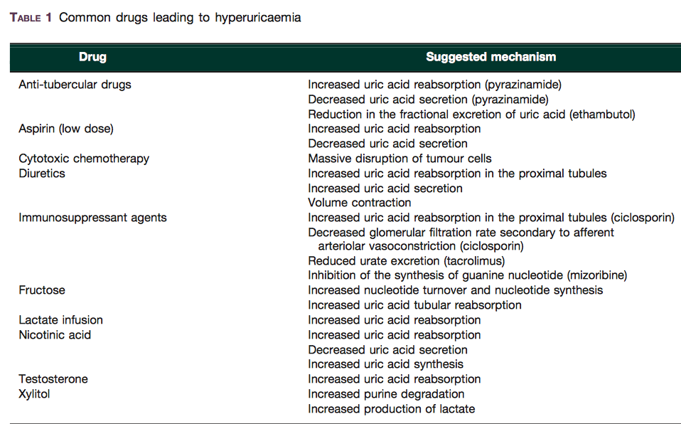 11) 알콜은 퓨린의 분해를 촉진하여 요산을 증가시키므로 알콜만 끊어도 요산수치가 내려가고 통풍이 예방되기도 함.