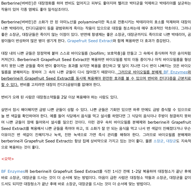 - 천연항생제로 '연쇄상구균, 포도상구균, 칸디다 곰팡이, 미생물'등에 광범위한 항생작용
