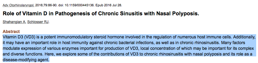 - 비타민 D는 면역력에 깊이 연관되어 있고 박테리아 감염, 만성축농증 치료에 중요한 역할