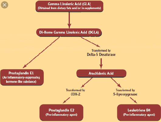 - 감마리놀렌산은 항염작용을 하는 중요한 지방산으로 달맞이꽃 종자유, 보리지유에 가장 많이 들어있음. 달맞이꽃종자유보다 보리지유에 감마리놀렌산이 더 많이 함유됨.