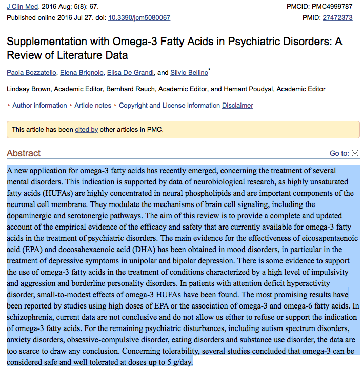 4) EPA, DHA는 양극성감정질환(bipolar disorder)의 과도한 신경시그널을 감소시켜 감정을 안정시킴.