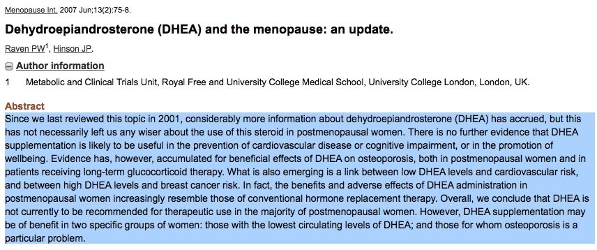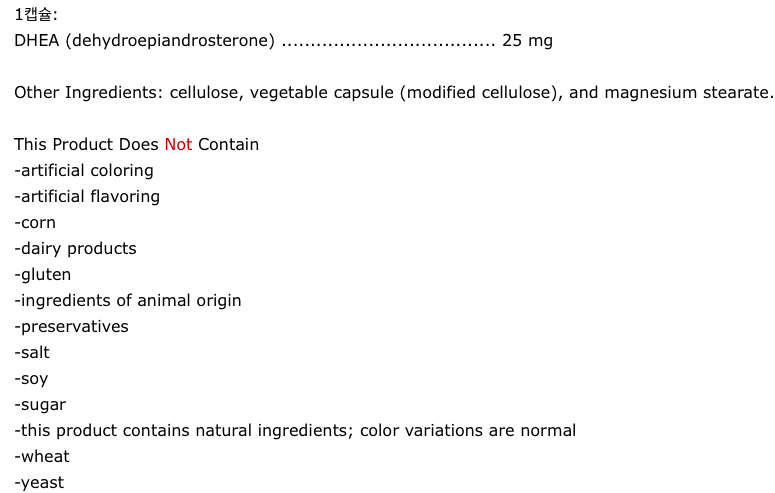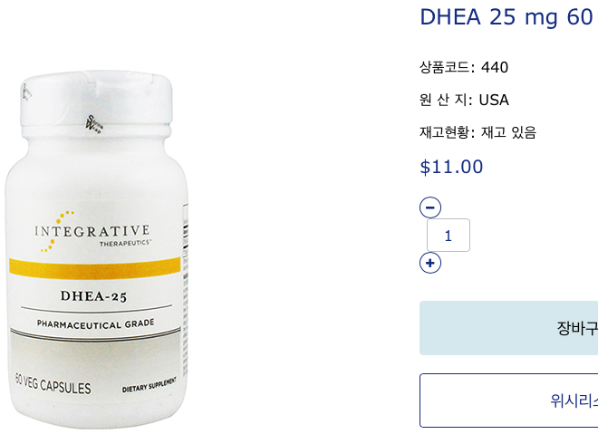 - DHEA을 복용하면 폐경 여성의 여성호르몬수치를 처방약(프레마린)수준으로 올려줌.