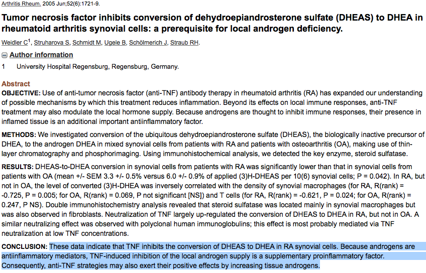 4) 남성호르몬 테스토스테론과 DHEA 부족이 류머티즘 발병의 원인으로 추정