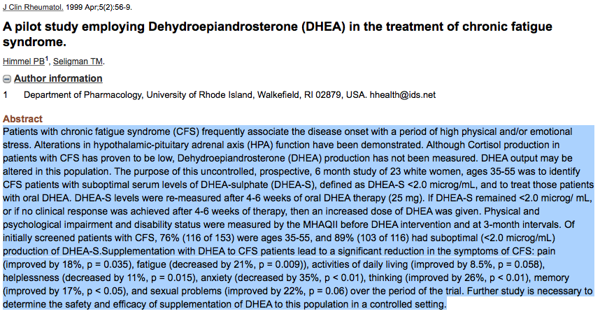 3) 류머티즘, 루프스 환자는 DHEA수치가 낮으며 DHEA복용하면 효과적임