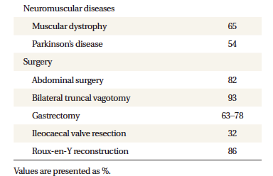 이러한 장의 조절기능이 제대로 이루어지지 않을 경우 소장내 세균 과증식(small intestinal bacterial overgrowth)이 일어나며 이는 다양한 임상질환과 관련이 있게 된다(Table 1).