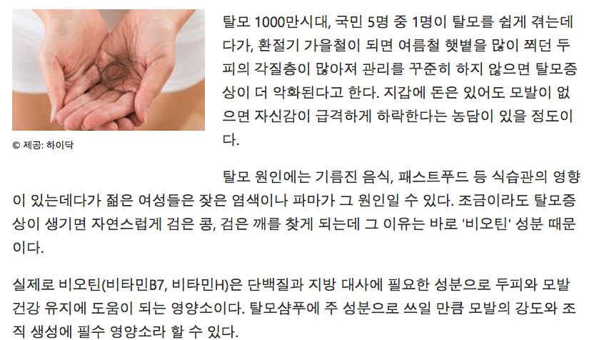 인터넷 검색상으로는 탈모와 비오틴의 관계 설명이 많음