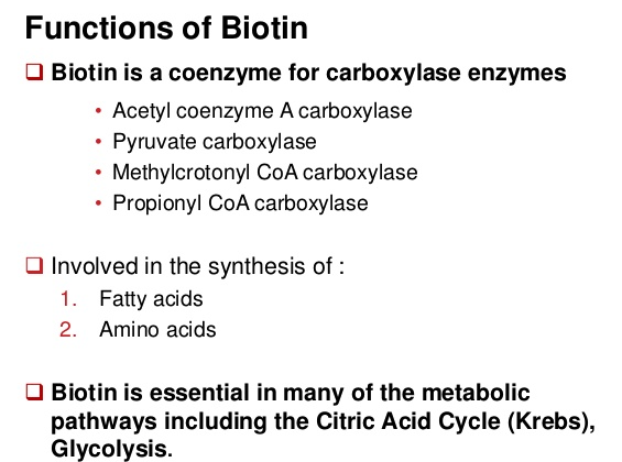 비오틴은 유전자 발현, 포도당 신합성과 지방산 합성에 중요한 역할