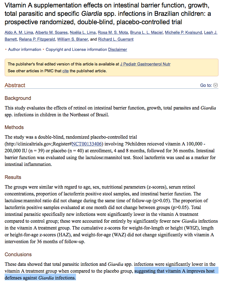 - 상피세포의 integrity, 면역기능, 망막기능에 중요한 역할. 비타민 A가 결핍되면 설사, 호흡기 감염, 장관기능장애의 위험이 증가함.