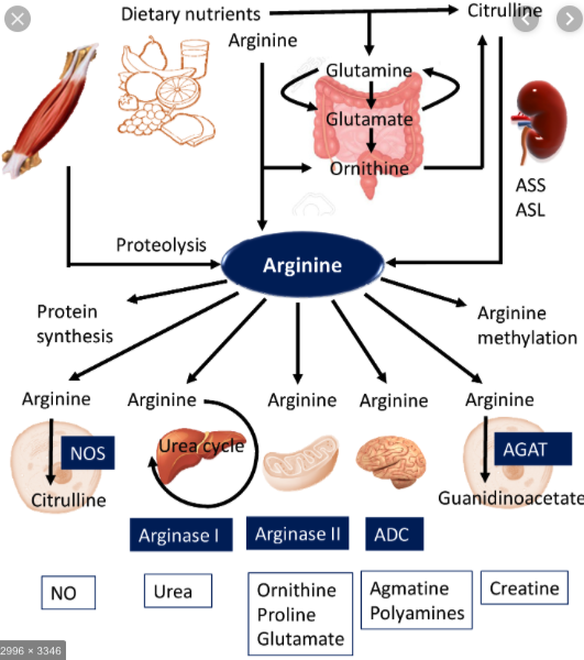 - 알기닌은 산화질소(nitro oxide)의 전구물질이며 외상, 항암요법으로 생긴 장질환 염증성 장질환에 효과적임.
