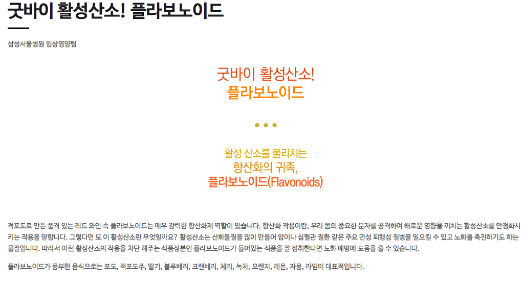 삼성 서울병원의 플라보노이드 - 항산화, 암예방에 효과가 있다고 밝힘
