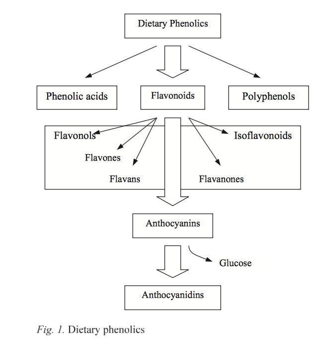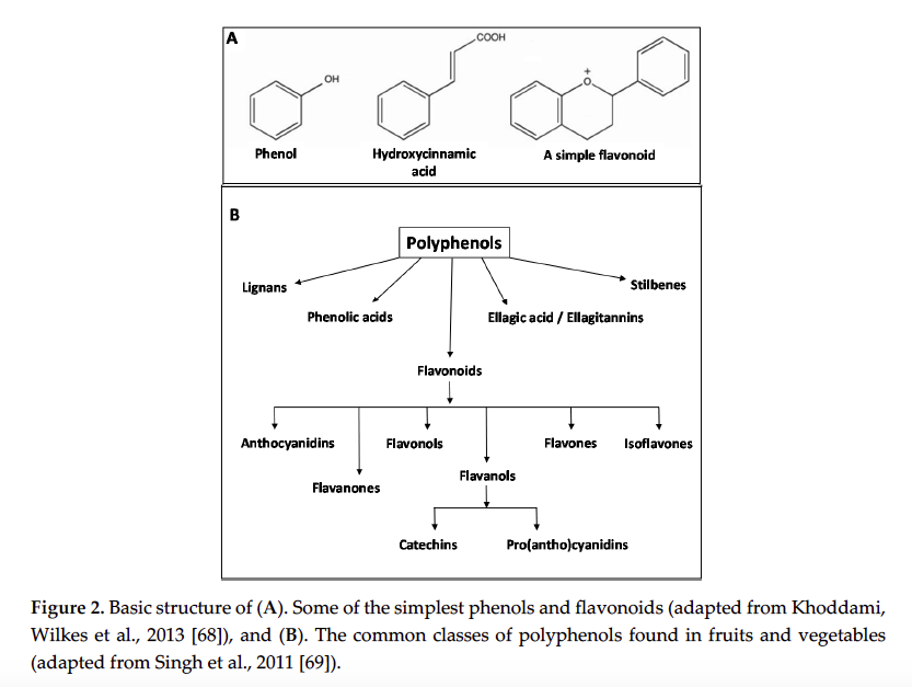 아래 그림처럼 폴리페놀 5가지로 분류할 수 있음.