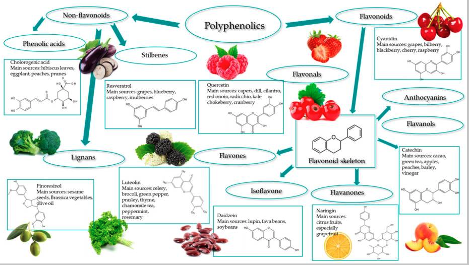 그런데 폴리페놀에는 비(非)플라보노이드(non-flavonoids)와 플라보노이드(flavonoids) 두 종류가 있다.