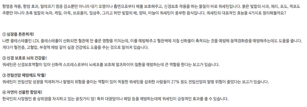 - 케르세틴, 아피기닌, 헤스페리딘, 루테올린은 플라보노이드가 함유하고 있는 항염증 효과...