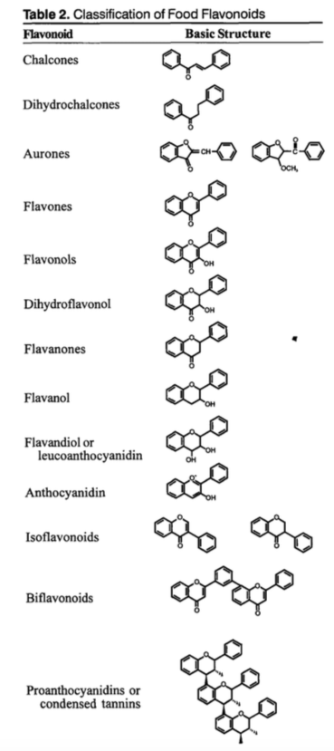 지구상에는 4000여종의 플라보노이드가 있는데 안토시아닌, 카테킨, 플라보논, 플라본, 이소플라본 등이 대표적이다. 플라보노이드는 “강력한 항산화 효과”를 가지고 있다
