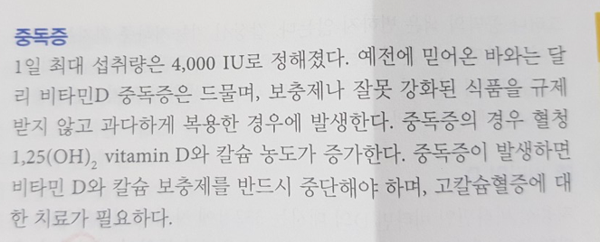 예전에 믿어온 바와 달리 비타민 D중독증은 드물며 보충제를 과도하게 복용한 경우 발생함.