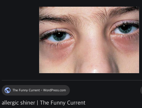 - 알레르기 샤이너는 소아때는 눈밑에 있는 혈관이 확장되면서 적혈구가 빠져나와 빨갛게 되다가 성이니 되면 다크서클로 바뀜