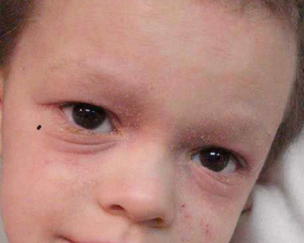 3) 눈아래 모간 주름, dennil's 신호(dennile's sign)